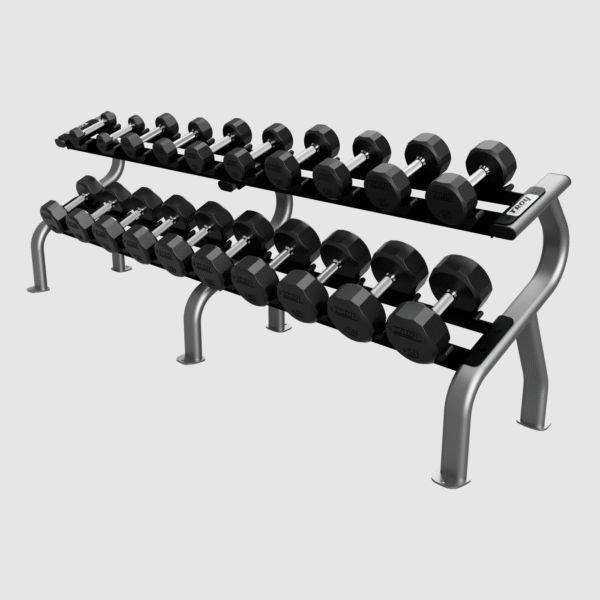 Troy 12 Sided Rubber Encased Dumbbell Set With Storage Rack – 5-50Lbs