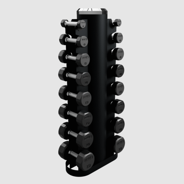 Troy 12 Sided Rubber Encased Dumbbell Set With Vertical Storage Rack – 5-25Lbs.