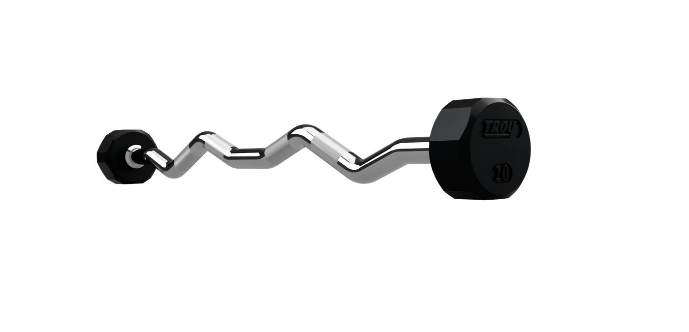 Troy 12-Sided Solid Head Rubber E-Z Curl Barbell W/Hard Chrome Bar