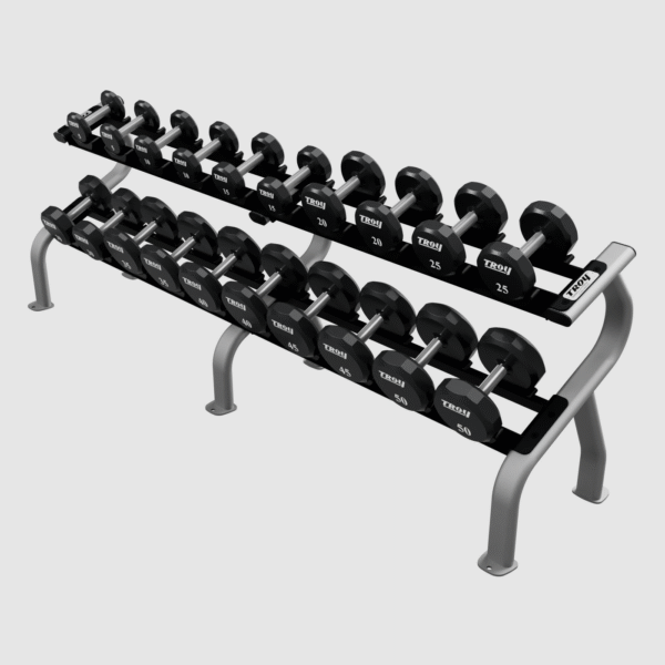 Troy 12-Sided Urethane Encased Dumbbell Set With Storage Rack – 5-50Lbs.